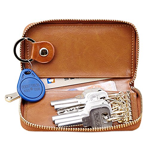 Package Includes: 1 x Esdrem Retro Cow Leather Key Case Holder Card Wallet Zipper Key Chain Case Pouch