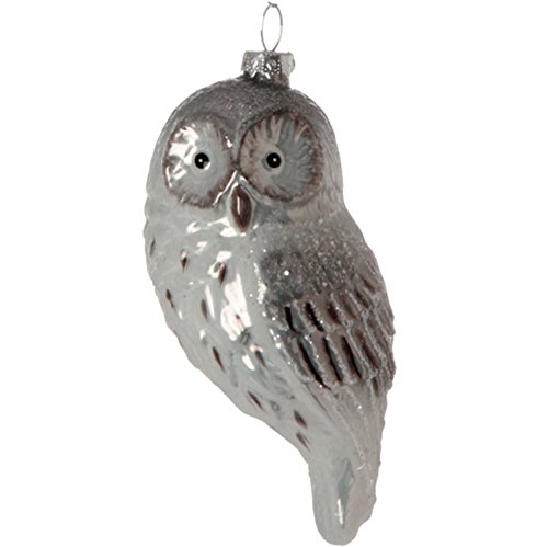 RAZ Imports - 5 Inch Silver and White Glass with Glitter Owl Christmas Tree Ornament - 3424707
