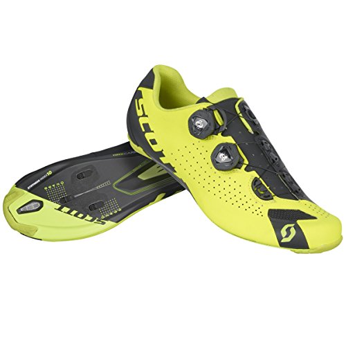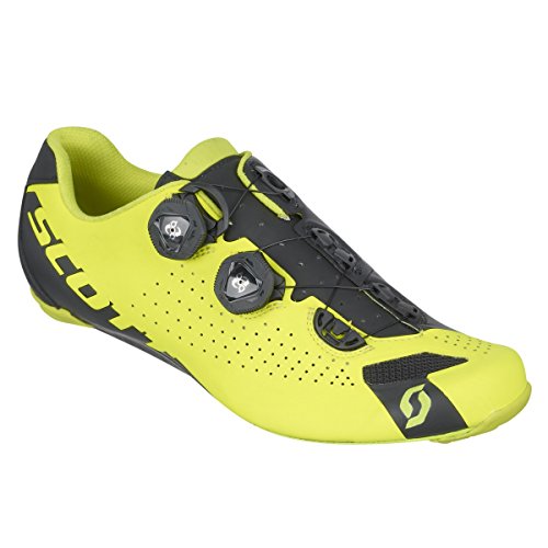 Studio : Scott Publisher : Scott Product Description Whether you're ambitions are to knock out a handful of coveted KOMs, scream out of the bunch for sprint primes and state championship glory, or drive a breakaway in the high mountains to garner sponsor TV time, the Scott Men's Road RC Shoes are up to the challenge with streamlined style. Boasting a light, stiff HMX carbon fiber sole, lightweight upper, and secure boa closures, these shoes transfer power with swift efficiency while keeping your feet cool and comfortable. Scott utilizes a strategic mix of lightweight microfiber and 3D nylon air mesh to build the Road RC's upper around its Wrap Fit construction. Wrap Fit consists of an internal layer of synthetic leather that's shaped to provide extra support while conforming to your foot reducing pressure points and increasing comfort. A BOA IP1 closure system weaves its way across the top of the shoe, with a second BOA securing the midfoot for lightning fast adjustment, even on the fly. Inside, Scott's Adjustable ErgoLogic removable insole provides a customizable arch for additional tweaks to the fit. 0