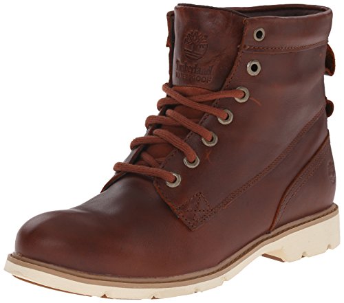 Ensure the dryness and freshness of your foot wearing the Timberland 6" Bramhall Lace-Up Waterproof Boot. This boot has a waterproof membrane with seam-sealed construction to lock out moisture and stop water from seeping in. The compression molded EVA outside offers superior cushioning and enhanced comfort for your foot. It also makes the boot light and airy. It has 15% recycled rubber pods in the forefoot and heel that provide unwavering traction. The SensorFlexTM technology protects your foot from injuries caused due to sudden or accidental impacts. It also has a stability layer that provides independent suspension. This shoe features an open-cell PU foam and OrthoLite® foot bed for long-lasting cushioning.Feature