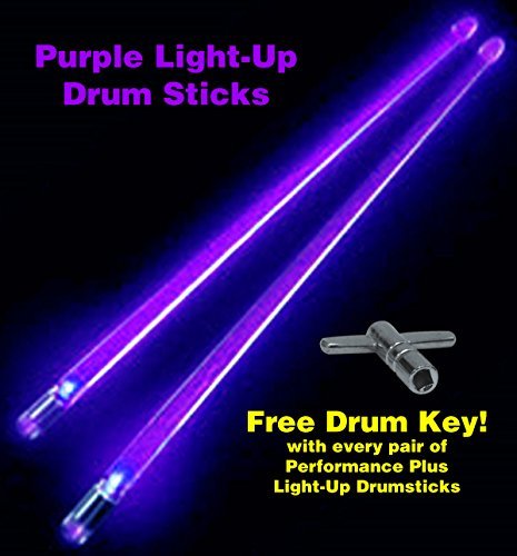 -. Feature : Firestix Light-Up Drumsticks PURPLE by Performance Plus with FREE Drum Key! / Pair of light-up drumsticks made of heavy duty, solid clear acrylic plastic / Bright Purple lights triggered by striking drums or cymbals (touch sensitive) / Batteries are included / Sold as a Pair Size 5B