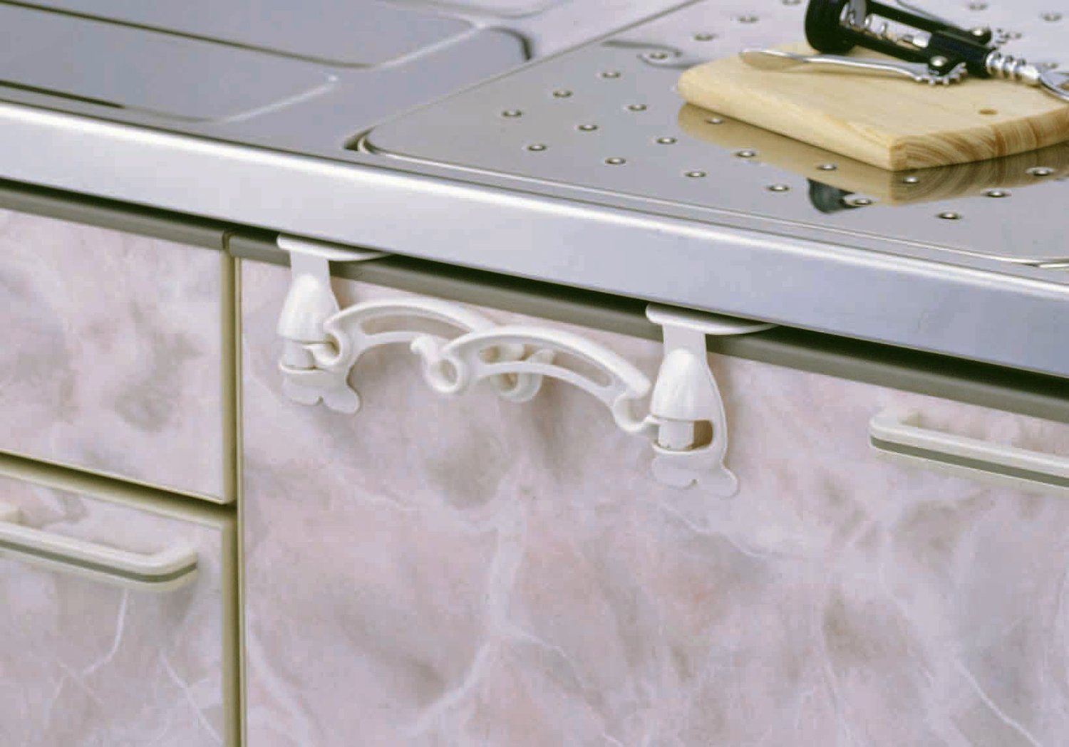 "Resin bag holder (for sink doors)" is a simple plastic shopping bag hook only by hooking on the door of the sink.