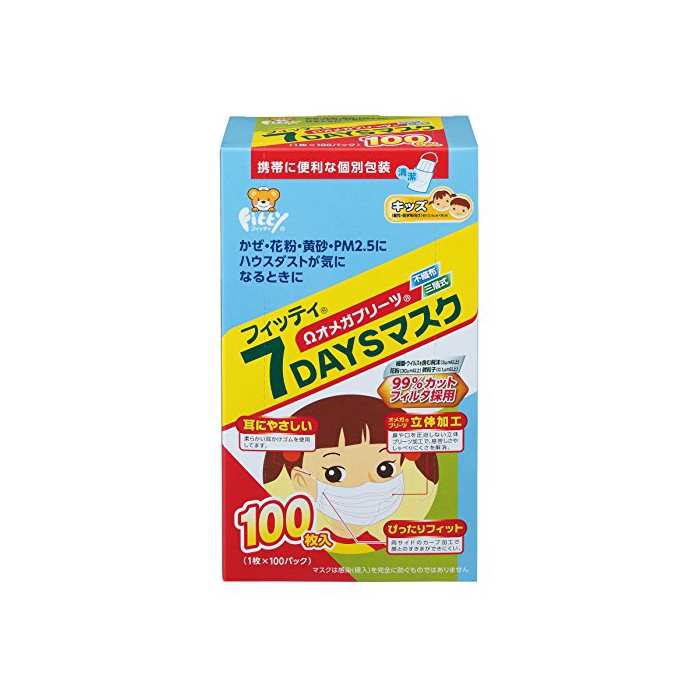 원본상품명: (PM2.5??)フィッティ 7DAYSマスク キッズサイズ ホワイト 100枚入