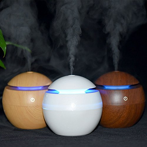 Mini Wood Aromatherapy Essential Oil Aroma Diffuser LED Ultrasonic Cool Mist maker Air usb mini Humidifier air purifier for home office babyroom (White)
