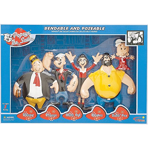 Set of 5 bendable figures includes Popeye with Wimpy, Olive Oyl, Bluto, and Swee'Pea.