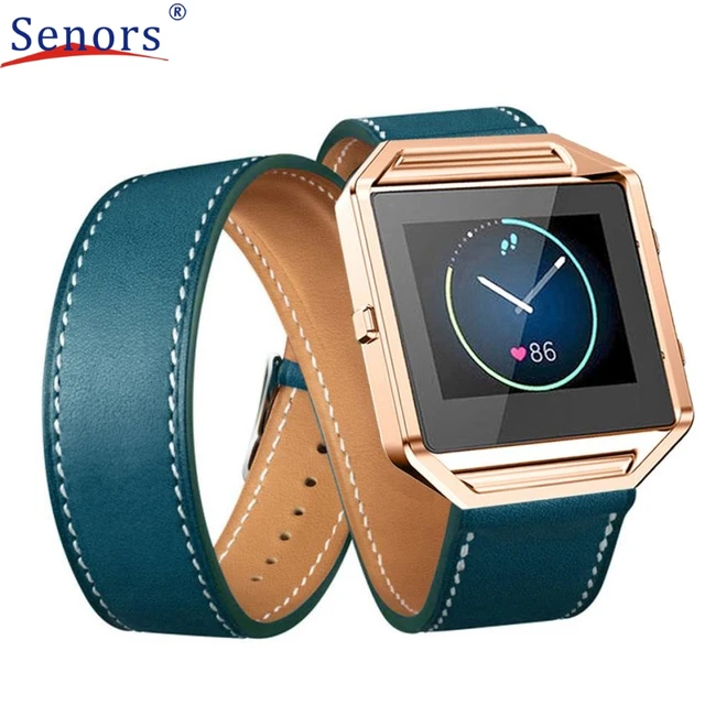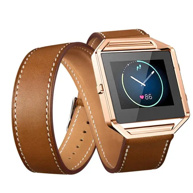 럭셔리 긴 가죽 더블 링 시계 밴드 손목 스트랩 핏 비트 블레이즈 스마트 시계