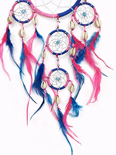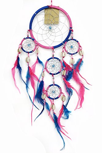 PEPPERLONELY Dream Catcher Pink and Purple Feathers 4.5 Inch Diameter, 20 Inch Long