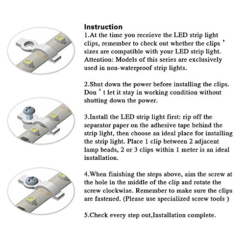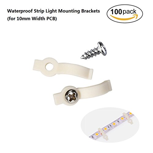 100 Pcs Strip Light Mounting Bracket Clip for Outdoor Silicone Covered 10mm Wide PCB Waterproof SMD 3528 5050 2835 3014 5730 LED Strips, One Side Fixing, 100 Pcs Screws Included