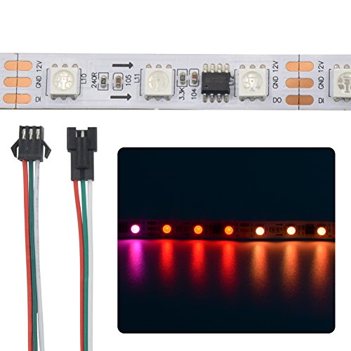 MOKUNGIT WS2811 LED Strip Lights 3.2ft 1m WS2811 30/60 LEDs/m 10/20 Pixels/m 5050 SMD RGB Dream Magic Color Addressable Led Digital Strip Pixel Light DC12V (60 LEDs/m Whire PCB Non-waterproof IP33)