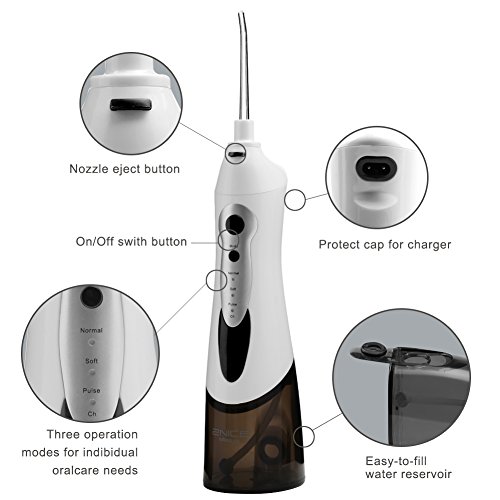EASY TO USE: Open the cap of Water Tank to inject in water , insert the nozzle, choose the mode suit you, turn on the oral irrigator, and you can enjoy cleansing your dental now.