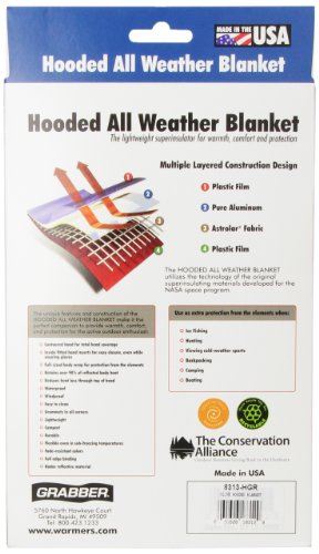 The Original Space Brand. An important improvement to the popular All Weather Blankets. An integral hood and sewn-in hand holds provide COMPLETE body coverage for the ultimate in warmth. It's windproof, waterproof, lightweight and flexible.Feature
