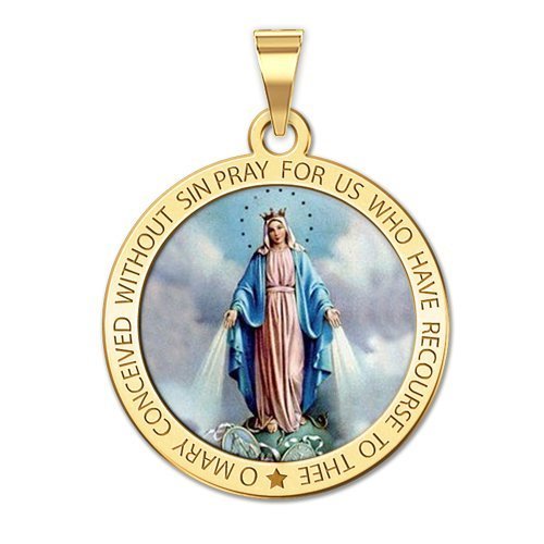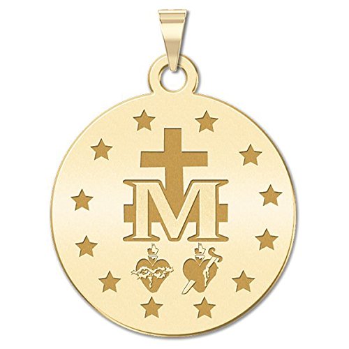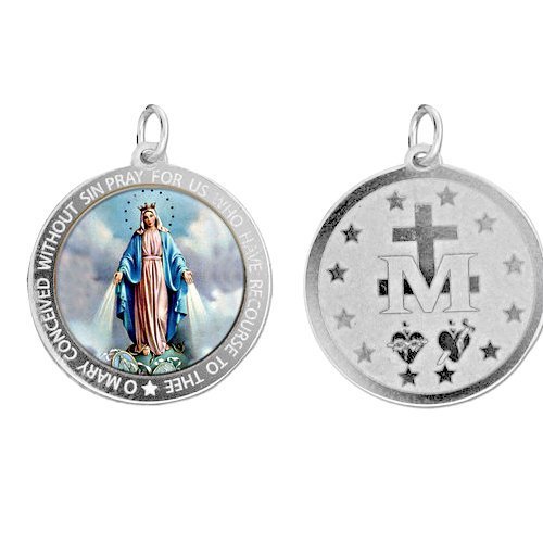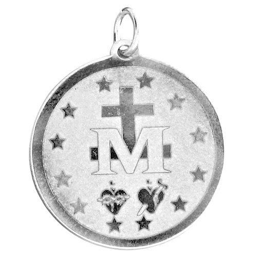 -. Binding : Jewelry -. Brand : PicturesOnGold.com -. Department : womens -. Feature : Solid Sterling Silver Miraculous Medal. / Made in The USA. / Back of Medal features an "M" surmounter by a cross with two hearts and twelve stars. -. Label : PicturesOnGold.com -. Manufacturer : PicturesOnGold.com -. Model : ST108-RC -. MPN : ST108-RC -. PartNumber : ST108-RC -. ProductGroup : Jewelry -. ProductTypeName : FASHIONNECKLACEBRACELETANKLET -. Publisher : PicturesOnGold.com -. Studio : PicturesOnGold.com -. Title : Solid Sterling Silver Miraculous Medal Color - 3/4 Inch X 3/4 Inch