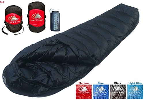 ► HIKE FARTHER with the LIGHTEST MUMMY DOWN SLEEPING BAG available (weighs 3.15 lbs. for size Regular and 3.32 lbs. for size Long) for this quality at the price. Compare to other big brand names to see the price difference we achieve through direct-to-consumer sales. Summit any mountain or camp by the summer sea with these compact bags and have room for carrying your favorite fleece blanket or silk liner, goose filled pillow, and pad.