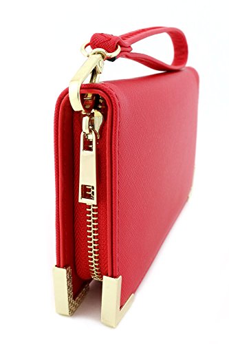 -. Title : Women's Saffiano Leather Wallet Wristlet with Gold Hardware Edges