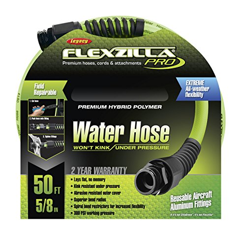 Flexzilla Pro Water Hose with Reusable Fittings, 5/8 in. x 50 ft., Heavy Duty, Lightweight, Drinking Water Safe - HFZWP550