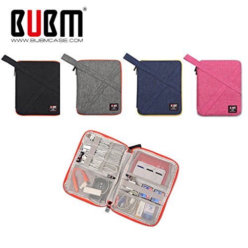 BUBM Designer Electronics Accessories Carry Case / Travel Organizer Bag with Handle / Electronics Accessories Bag / Battery Charger Case (Medium, Black)