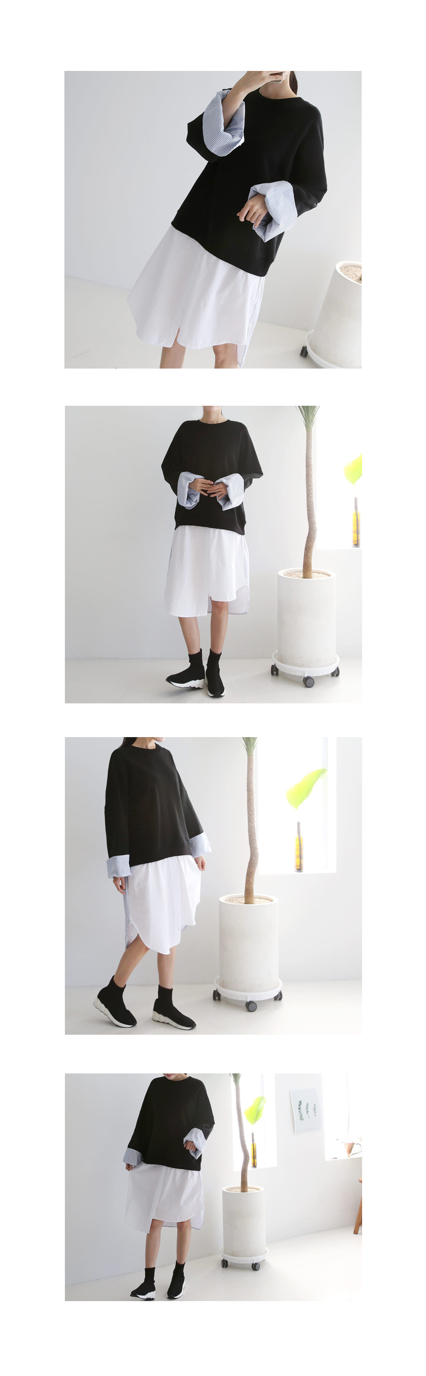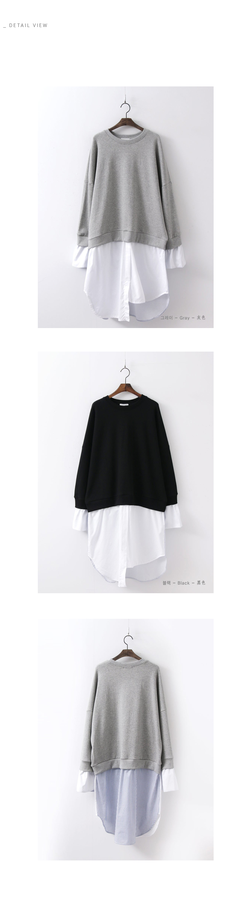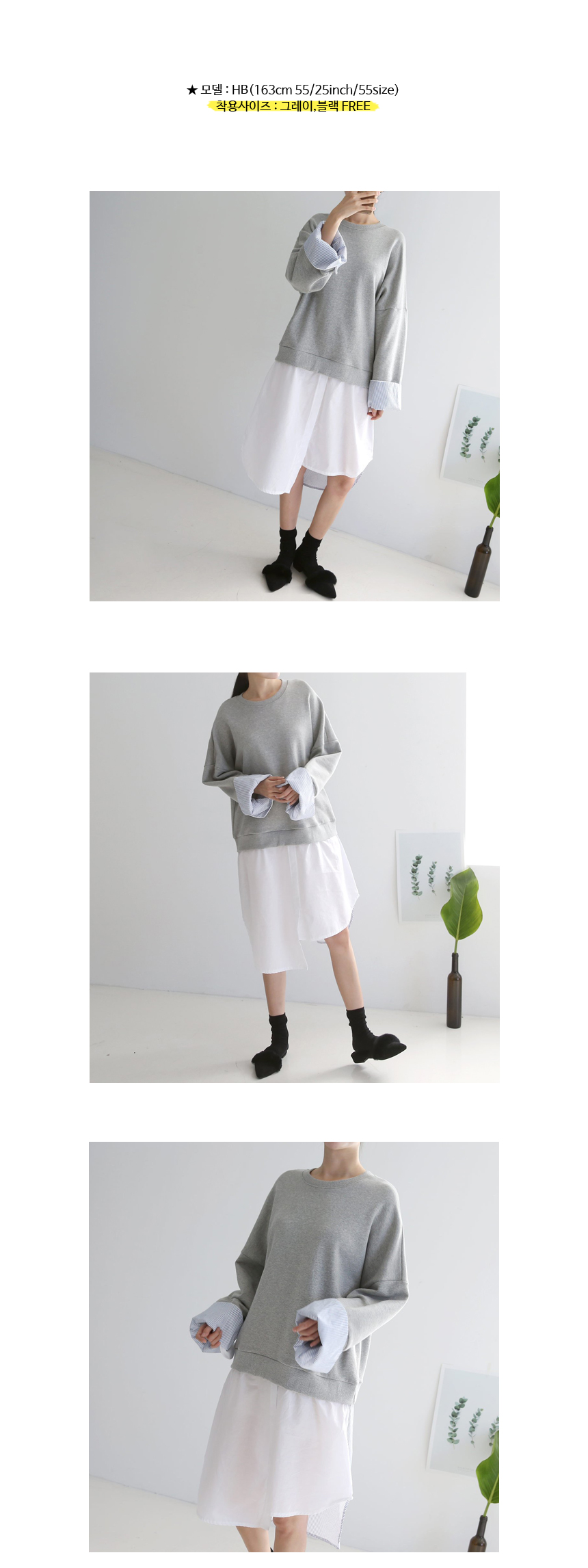 맨투맨과 셔츠가 레이어드 되어진 셔츠 원피스입니다