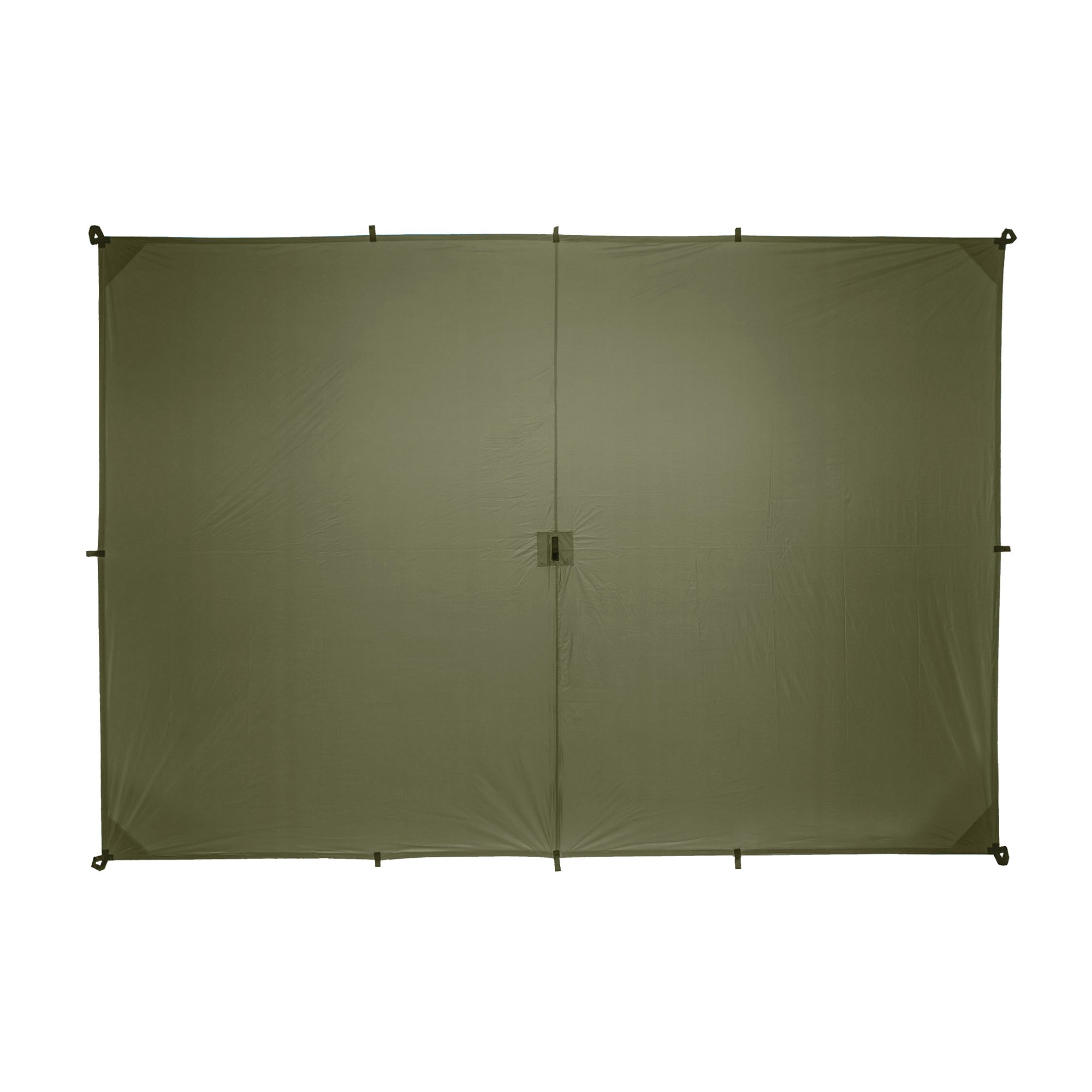 It is possible to install it at various angles using a reinforced webbing loop located on the periphery and ridgeline of the tarp.