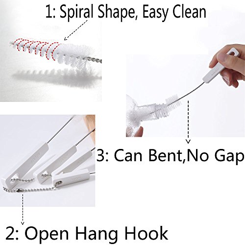 ☆FEATURES: Different sizes for different part of your cup bottle and pot; The nylon brushes will be better to clean the residue; All brushes are tied together by a key ring. It is convenient for you to hang them for storage