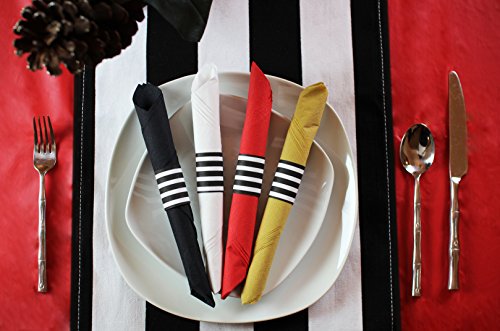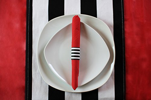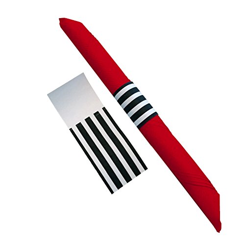 - CHIC CUSTOM DESIGN - Why use just plain red paper napkins when you can add these custom black and white stripe napkin bands and add a chic and elegant touch to your table setting. Each partyware kit includes 40 self-adhesive napkin rings and 40 2 ply dinner size red paper napkins. They are a perfect complement to a Birthday Party, Italian Theme Party, Valentine’s Party, Mexican Theme, Red Carpet Party Decorations, Pirate Theme, Engagement Party or any special event.