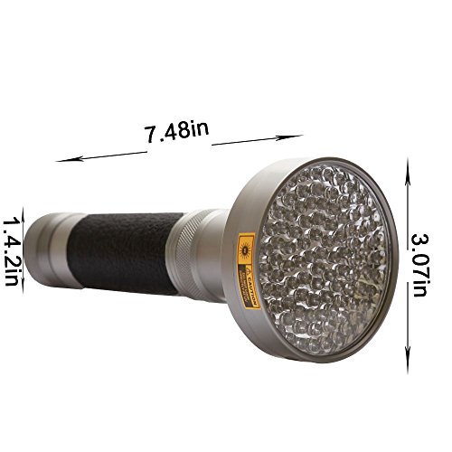 - Super Brightness, Big flood effect - Our Latest High-Flux Density LED Bulbs have more UV power and up to 30% more intensity than cheaper LED’s,Scan your yard, alley, or pathway with our SUPER WIDE 4-6 foot FLOODLIGHT BEAM that can light-up scorpions up to 50 feet away!Save time,save money.