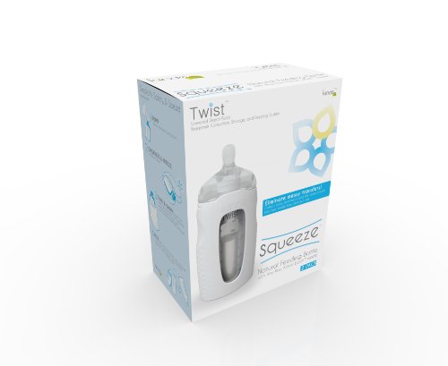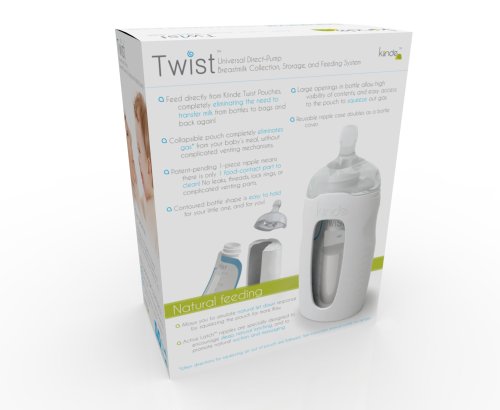 -. Feature : Feed directly from Twist Pouches (sold separately), eliminating the need to transfer milk from bags to bottles / Collapsible pouch completely eliminates gas from your baby's meal with no complicated venting mechanisms. / Patented 1-piece Active Latch nipple means there's only 1 part to clean. No threads, lock rings or complicated venting parts. / Includes 1 medium and 1 slow flow Active LatchTM nipple with cases (which double as bottle covers). Active Latch nipples are designed to teach and reward deep, wide, natural latching. / Contoured bottle shape is easy to hold for your little one, and for you! The bottle can also be used to support your breastpump while pumping directly into Twist Pouches.