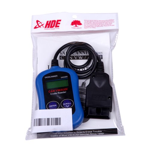 -. Brand : HDE -. Color : Blue -. EAN : 6917936549203 -. Feature : Works with most 1990 and newer Volkswagen and Audi models (Audi / Seat / Skoda / Jetta / Golf / Beetle / Touareg / GTI / Passat and more) as well as most CAN-Protocol compliant vehicles / Diagnoses and erases DTCs (diagnostic trouble codes) of engine, ABS, airbags, and automatic transmission | User's manual contains all VW/Audi DTC definitions / Turns off the check engine light | Device is powered via detachable OBD II cable | Highly reliable and accurate | Backlit LCD display is easy to read / Package Contents: 1 x VW/Audi DTC Scanner, 1 x User's Manual / HDE is a registered trademark and is the only authorized seller of HDE branded products -. Label : HDE -. Manufacturer : HDE -. ManufacturerPartsWarrantyDescription : Parts -. Model : HDE-N116 -. MPN : HDE-N116 -. PackageQuantity : 1 -. PartNumber : HDE-N116 -. ProductGroup : Automotive Parts and Accessories -. ProductTypeName : AUTO_ACCESSORY -. Publisher : HDE -. Studio : HDE -. Title : HDE VAG305 OBD II Diagnostic Trouble Code Reader Scanner for Volkswagen Audi -. UPC : 797734246971