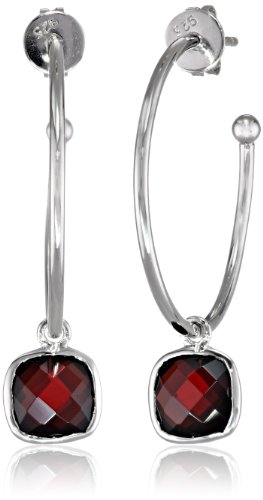 -. Title : Gemstone Bezel Set 30mm Half Hoop Earrings in Sterling Silver