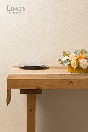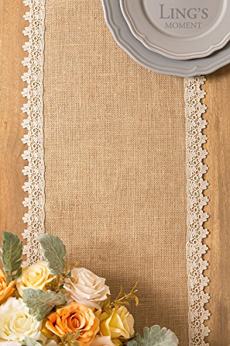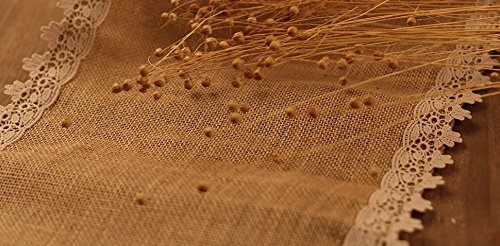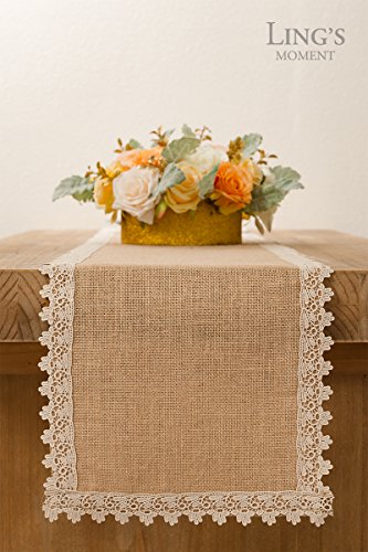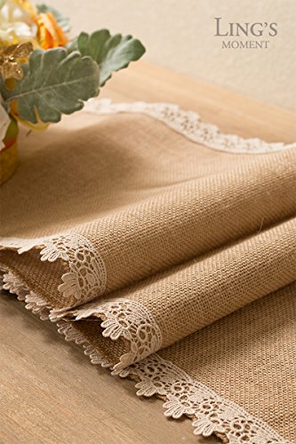 Studio : ling's moment Publisher : ling's moment Product Description High quality jute burlap table runner designed specially for your wedding, special events and home decoration, lace decorations, with romantic factors, sexy and individual, show charming loveliness. Choose the runner that match your theme and it will easily add a simple elegant finish to the venue. 0