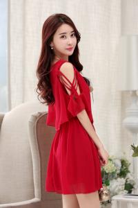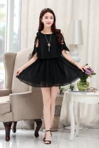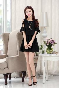 シフォンワンピース ミニ丈ワンピース オープンショルダー オケージョンワンピース プチプラ シンプル 上品