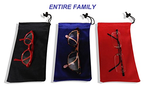 -. Feature : STORE YOUR SUNGLASSES WITH STYLE: These high quality microfiber storage pouches come in aset of 3 and with every order you will also receive a FREE black blank cloth to always keep your glasses or smartphone screen clean. Not to mention this set of three pouches comes with a spring fastener as anextra layer of protection. When you close your pouch, it will remain closed no matter what! / NOT JUST FOR YOUR GLASSES: These silky-soft pouches are not meant just to keep your eyeglassessecure. You can also use them to store your watch, cell phone, jewelry, MP3 players, smartphone as well as other small items that you don't want to lose! / SOFT FABRIC OF MATCHLESS QUALITY: Our set of eyewear cases comes with 3 different colors,black, blue and red. The colors are perfect to suit your unique style but at the same time, they are dark which means they don't easily become dirty like similar pouches on the market.Plus, since you'll have 3 cases ofdifferent colors, feel free to share them with your family or friends! / SPACIOUS WITHOUT TAKING UP TOO MUCH SPACE: These sunglass storage pouches are 4" x 7" insize which means they can fit pretty much anything you might possibly want but, unlike other sunglasses cases,they will not take anyextra space in your pocket! / SOFT, HANDY STORAGE OR YOUR MONEY BACK: These premium microfiber sunglasses pouchesare your best bet to keep your glasses safe and your items organized. Besides, we use them ourselvesevery single day. That's why we want you to get in touch with us if you are not 100% satisfied with your order and we'll make it right!