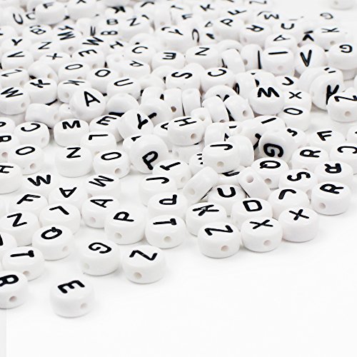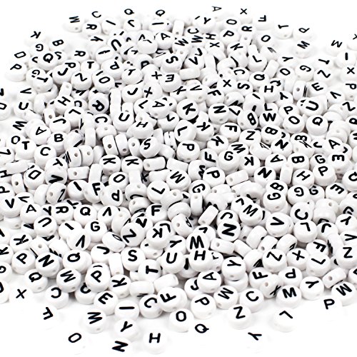 JPSOR 600pcs 4x7mm Acrylic White Round Letter Beads for Bracelets and Jewelry Making,with Thread & Pouch