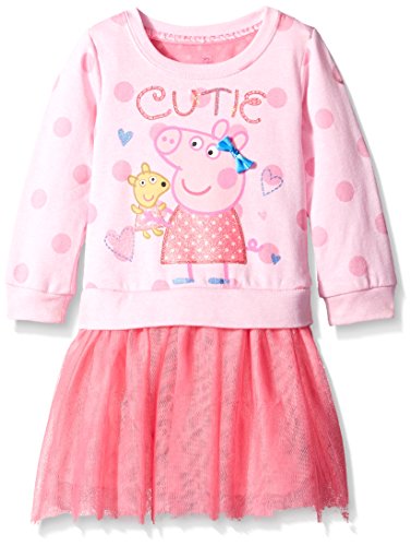 Peppa Pig crew neck sweatshirt dress. Tag less for comfort fit. Bright, fun colors