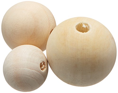 Souarts Mixed Natural Round Ball Wooden Wood Loose Beads 20mm 25mm 30mm Pack of 30