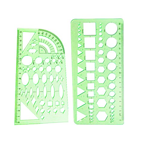 YEJI 2PCS Green Plastic Measuring Templates Geometric Rulers geometric patterns for Office and School, Building form work, Drawings templates
