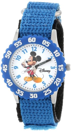 Keep track of time with this officially licensed Disney stainless steel kid's time teacher watch by ewatchfactory on your wrist. The timepiece displays artwork from your favorite Disney character on the face, and is designed with labeled "hour" and "minute" hands to help young ones learn how to tell time. This classic watch has a polished and matte steel finish and a precision Japanese movement for accurate time keeping and a 1 year manufacturer warranty.