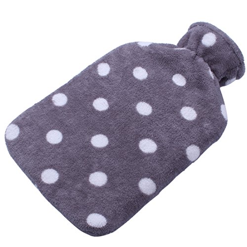 HomeTop Premium Classic Rubber Hot or Cold Water Bottle with Soft Fleece Cover (2 Liters, Purple / Gray Polka Dot)