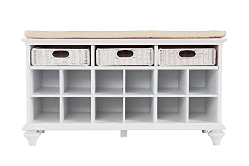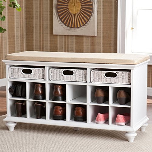 -. Brand : Best Home Products -. Color : white -. EAN : 0037732906751 -. Feature : This shoe bench will be a perfect addition to any entryway, bedroom or sunroom / The bench has a padded seat in warm cream cover that is removable and washable / It's a versatile storage piece for organized bliss in any room / Three (3) rattan drawers and twelve shoe storage shelves. / Overall dimensions: 21.75 inches high x 38 inches wide x 16.25 inches deep -. Label : Best Home -. Manufacturer : Best Home -. ProductGroup : Lawn & Patio -. ProductTypeName : OUTDOOR_LIVING -. Publisher : Best Home -. Studio : Best Home -. Title : Upton Home Kelly White Entryway Bench with Storage -. UPC : 037732906751