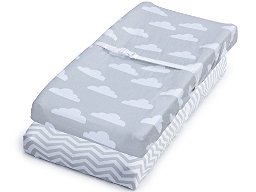 Changing Pad Cover, 2 Pack Unisex Clouds/Chevron Design, Fitted Soft Jersey Cotton, Baby Bedding Sheets for Cradle Bassinet, Fits Standard Contour Changing...