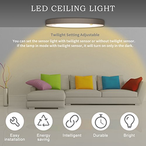 Xing ruiying Motion Sensor LED Ceiling Lights Flush Mount, Twilight Setting Adjustable, 15W 1200LM, Daylight White 4000K