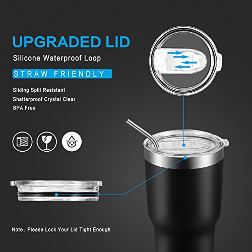 - Upgraded Waterproof Lid Design- Stainless steel tumbler with improved sliding lid, more fit cup body and straw friendly, if the slider lid tightly closed, it will protect you from accident spills while drinking.