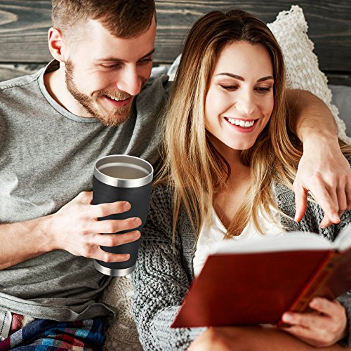 - Lifetime Durability- 18/8 food grade stainless steel body, BPA free, healthier than plastic cup. The insulated tumbler never sweat due to the Vacuum insulated design. Powder coating on the outside fits more comfortably in your hand, looks good, anti-slip.