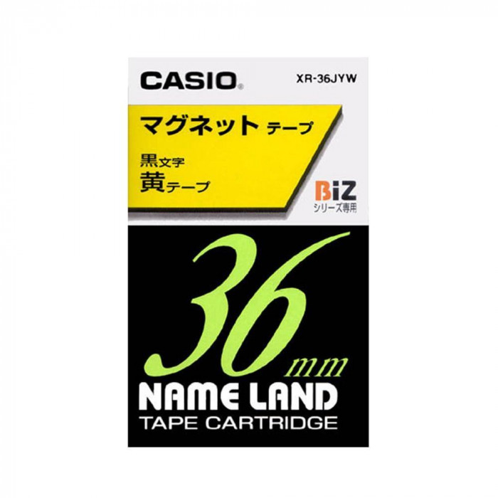 「ネームランド」のBizシリーズ用マグネットテープです。ホワイトボードやキャビネットに。 製造国:中国 素材・材質:樹脂 商品サイズ:テープ:長さ1.5m、幅36mm 仕様:【色】テープ:黄、文字:黒裏面マグネット加工 ※サプライヤー直送品 ご注文後7~8営業日後の出荷となります【商品名】CASIO カシオ マグネットテープ36mm幅 (黄地/黒文字) XR-36JYW