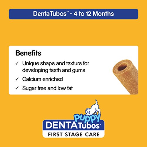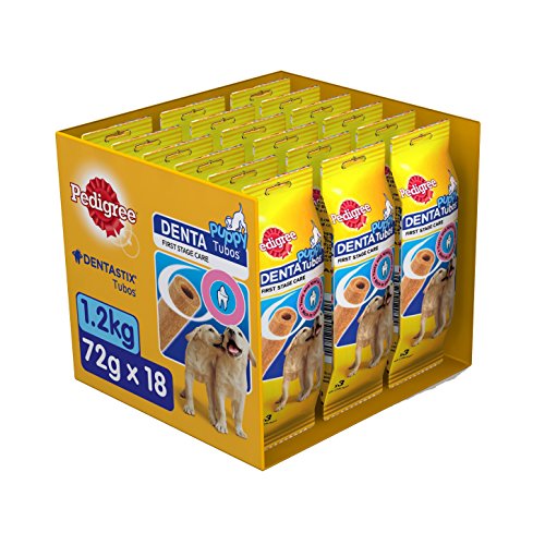 Studio : Mars Publisher : Mars Binding : Misc. Product Description Pedigree Puppy Tubos have been specifically designed for developing teeth and gums. Puppy Tubos is a tasty way to care for your puppy's developing teeth and gums with the tubos rich in calcium and a unique shape and texture. Calcium helps develop strong teeth and bones while the added Omega 3, vitamins and minerals helps to keep your pup fit for life and to maintain natural defences. Ingredients: Cereals, derivatives of vegetable origin, minerals, meat and animal derivatives. 1 pack contains 3 chews. Flavour: Chicken 0