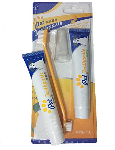 1. The Dog Dental Care Kit includes: 2 Toothpaste (Beef & Herbs), 2 Finger Toothbrush and 1 Dual Sided Brushes. 2. This toothpaste can help to keep his breath smelling fresh, can kiss your pet anytime you want. 3. Effect:Effectively clean and eliminate the pet oral odor , prevention of tooth disease and the formation of tartar. 4. Safty: Special addition of refined bone meal which is eatable, can alleviate the symptoms of pet dental calcium deficiency and delay tooth aging. 5. To keep your pet dental health, Clean Teeth Every Day.Feature