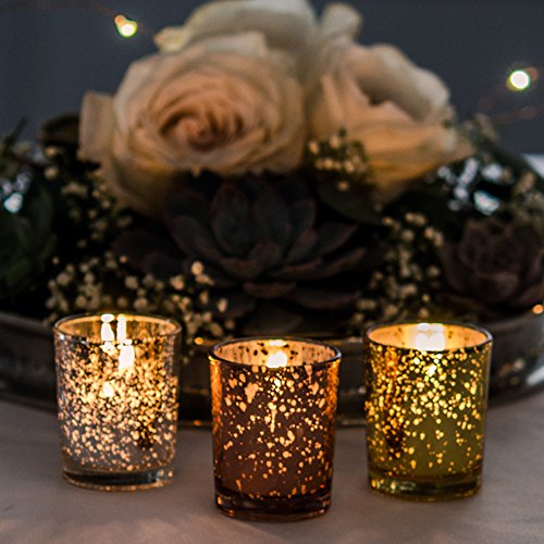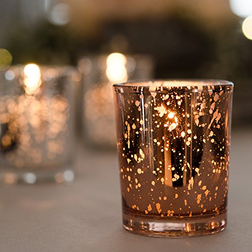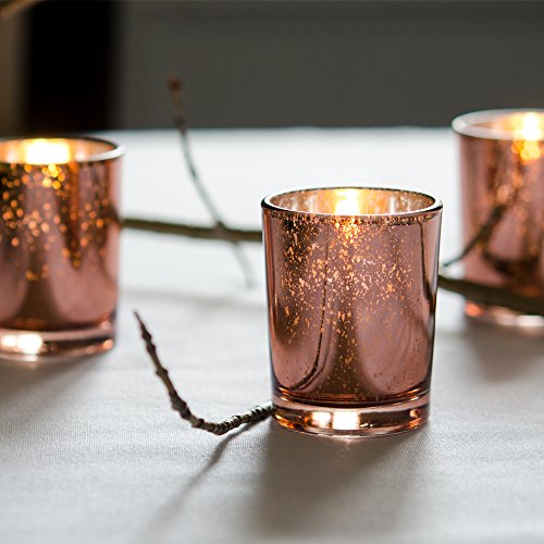 Yummi Set of 36 10 hour Votive Candles & Metallic Holders, Rose Gold Metallic