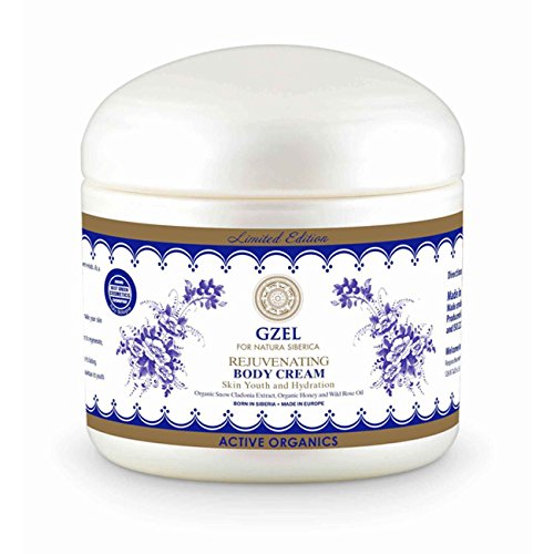 Natura Siberica GZEL Rejuvenating Body Cream The formula of this Rejuvenating Body Cream combines traditional Siberian recipe and innovation technologies to make your skin younger and even more beautiful. It contains wild Siberian herbs full of vitamins and microelements. Organic Snow Cladonia Extract is an unbeatable remedy. Thanks to high concentration of strong antioxidants it regenerates, rejuvenates and tones your skin, makes it more supple and elastic, protects your skin against environmental impacts. Organic Honey from West Siberia is full of microelements and vitamins. It is a perfect aidto tone your skin and reduce its fading. Enriched with vitamins A, C, E, F and fatty acids, Wild Rose Oil intensively moisturizes your skin keeping it young and beautiful. Rejuvenating Body Cream energizes your skin, while making it supple and elastic.