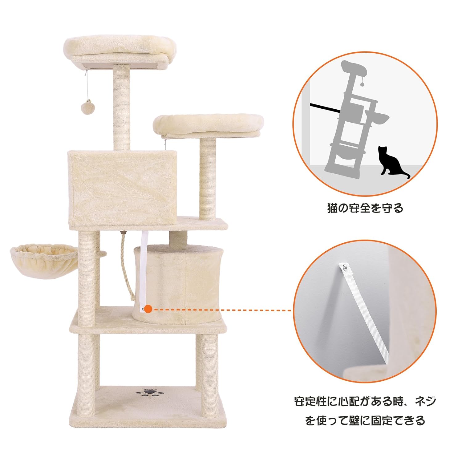 【向上した仕上り】支柱は手首より太く、全体の安定感を確保、大きな猫ちゃんが遊んでも揺れにくいです。匂いのある部品を一切使用せず、角も全部丸くしており、大事なペットを傷けず、優しく守ります