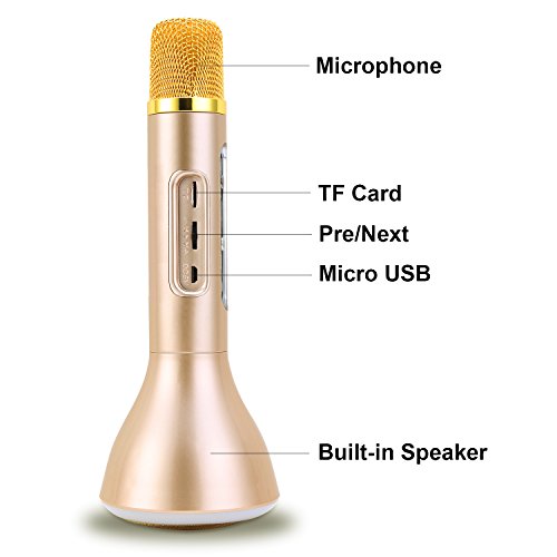【Mini Bluetooth Karaoke Machine System】Easy-to-Pair this Kids Karaoke Microphone to any IOS/Android Smartphones orTablets & Let Your Child Sing-A-Long with Any Song. There's also an TF Card Slot for Music Playing.Your Child Will Perform Like a Rockstar For Hours of Karaoke Fun!