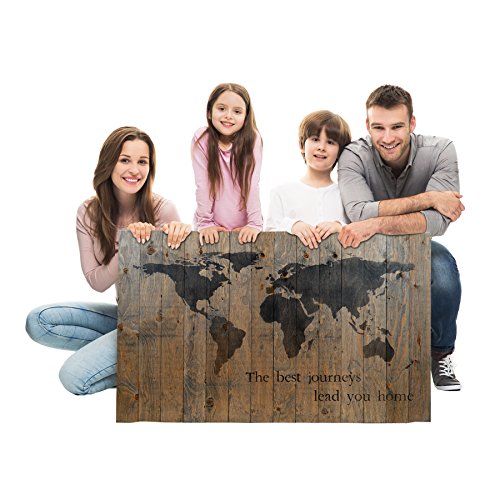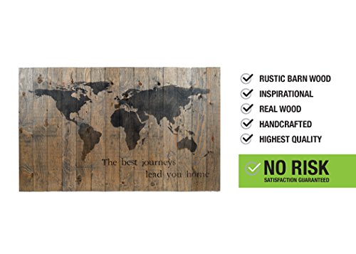 -. Title : WORLD MAP RUSTIC BARN WOOD PALLET SIGN - THE BEST JOURNEYS LEAD YOU HOME. 42"x26" Handcrafted elegant antique style wall decor with inspirational quote that will look beautiful in your family home